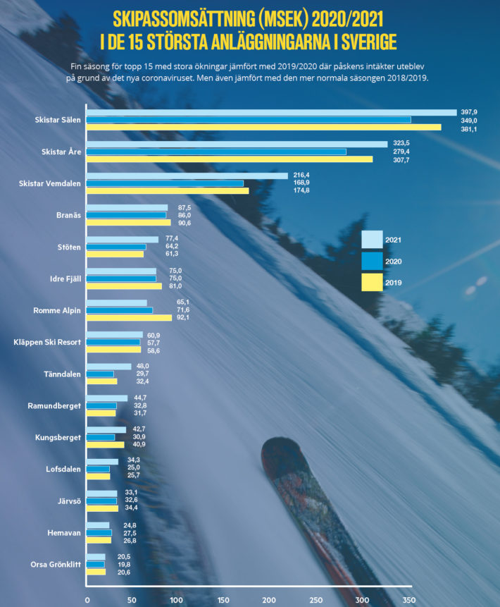 Idag är Branäs större än vad många tror, faktiskt fjärde största skidanläggningen i Sverige, enligt branschorganisationen SLAO. Vintern 2020 hade man cirka en halvmiljon skiddagar i Branäs.