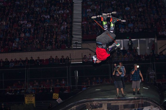 Nitro Circus-gänget dedikerade även en av sina Melbourne-shower till minne av skidikonen Sarah Burke, som tragiskt gick bort i januari i år. Burke var gift med Rory Bushfield.
