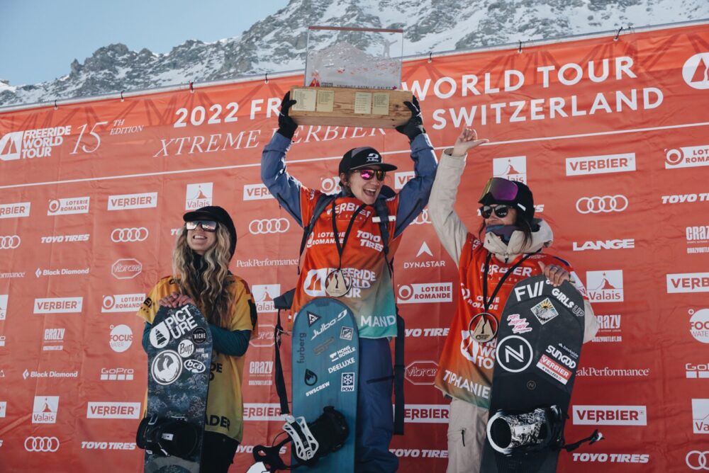 På damsidan var det årets rookien Sybille Blanjean som plockade hem Verbier Xtreme tävlingen. Hon gör det som sin första pall placering på FWT någonsin och även det på hemmaplan. Kommentaren hon gav var “kan inte tro det, men jag kanske gör det nån dag”. Sybille körde på den högra sidan av facet och tog 3 stora drop.