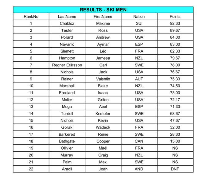 Resultat Freeride World Tour Andorra 2022