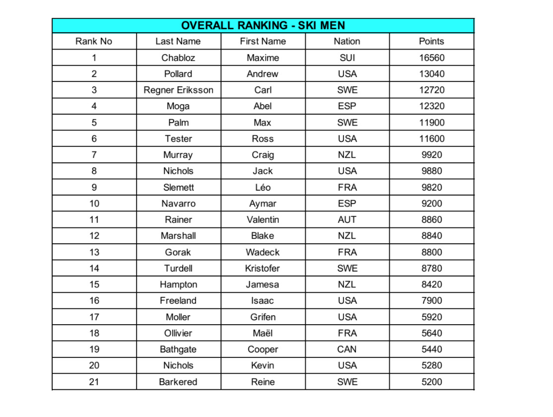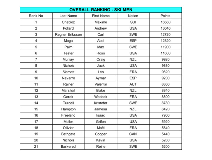 Carl Regnér, sista svensken i startfältet om vi tänker bort brädåkare som seglar under Elixabeth II:s flagg, tog samma linje som Turdell och utförde det hela smoothare en en smoothie körd i höghastighetsmixer. Konkurrensen var benhård idag och Carl hamnade 7:a och seglar därmed upp till total 3:a i rankingen på Freeride World Tour för skidor herr.