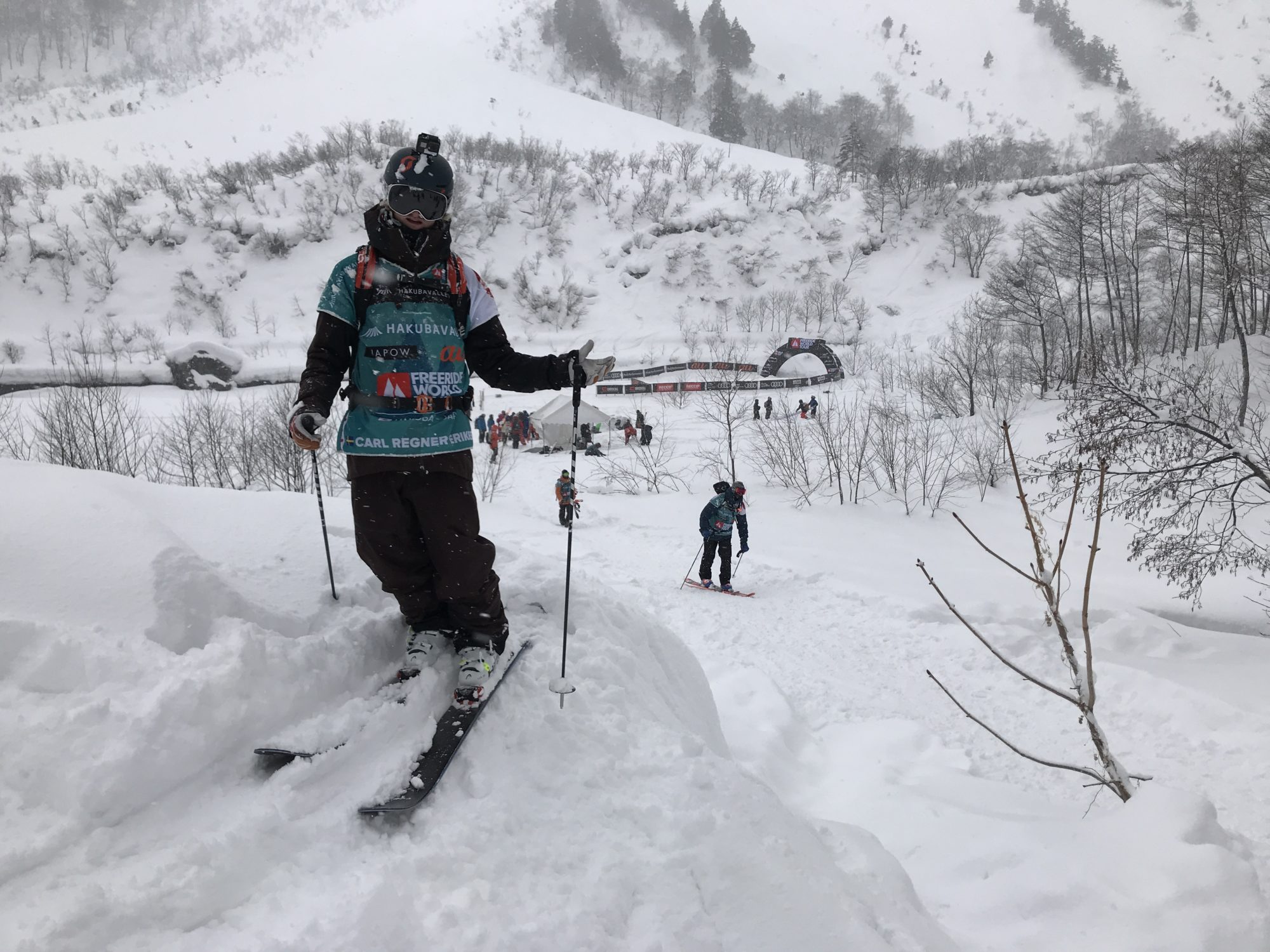 Varken Freeride World Tour eller Carl Regnér som är rookie i år har haft någon lysande start. Tävlingsstoppet i Hakuba, Japan fick ställas in och Carl Regnér åkte in i ett träd och bröt handleden, samt vänster lillfinger.