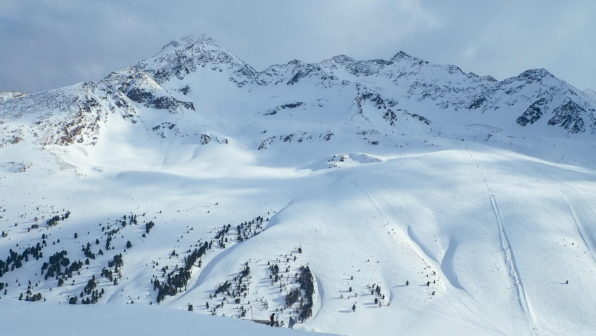 Vi nickar och instämmer angående planerna, knäpper pjäxorna och tar dagens första svängar. Dagen fortlöper och förhållandena är fenomenala. Lite nysnö ligger över det underliggande relativt mjuka snölagret och på eftermiddagen tittar även solen fram. Christian visar oss fyra olika offpist-åk som endast kräver en liten promenad tillbaka till liftarna. Dagen avrundas med några pist-åk och slutligen med en kall öl på en ena av två restaurangerna i Kühtai.
