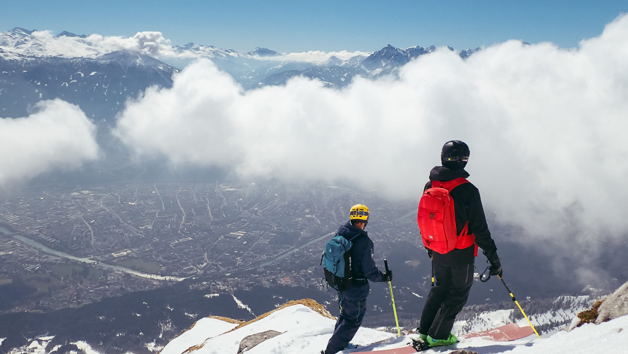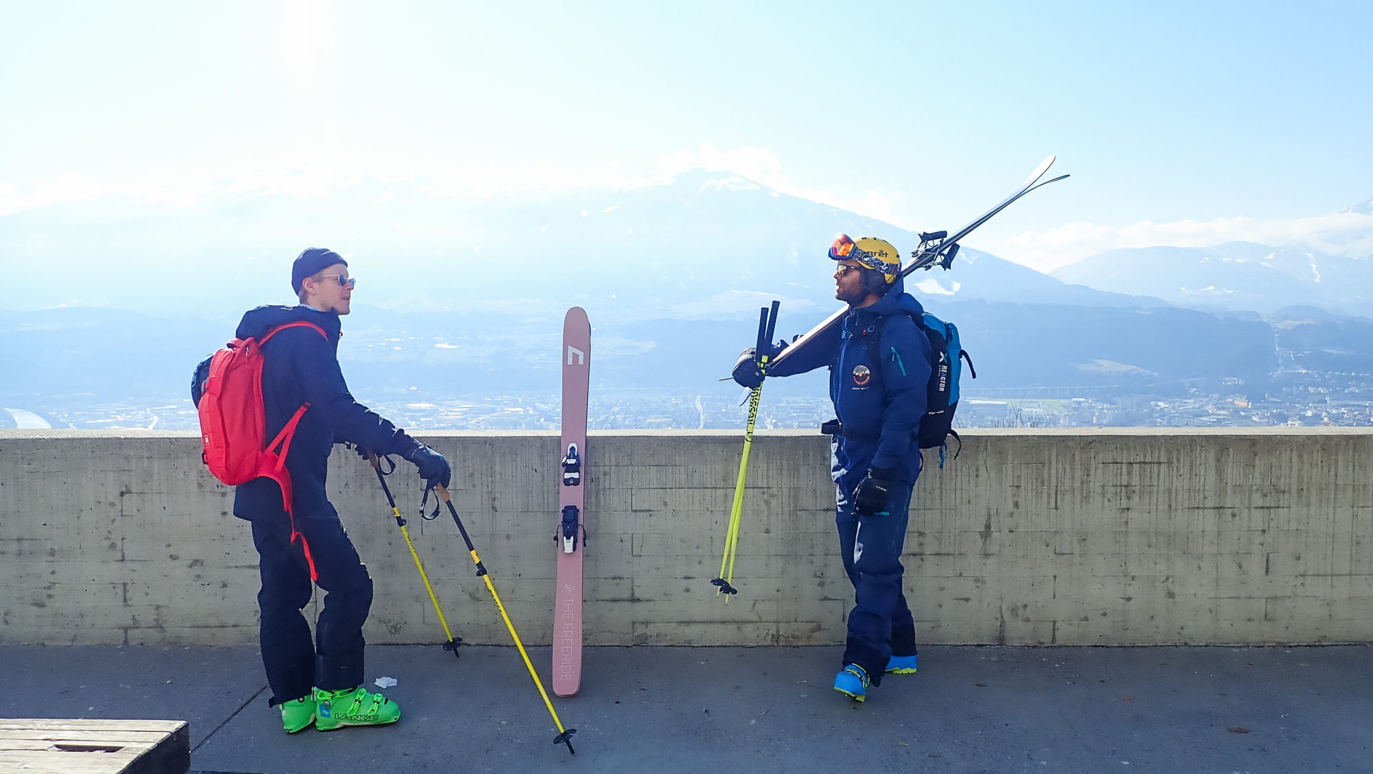 Det är en pampig känsla att stå på toppen och blicka ut över Innsbruck. Vi ser ner på staden och på alla kringliggande små skidorter längs begsidorna runt om. Tanken slår mig; maxade möjligheter att växa upp här och bara kunna välja och vraka. Själv fick jag hålla till godo med Billingebacken i Skövde, inte heller så pjåkigt!