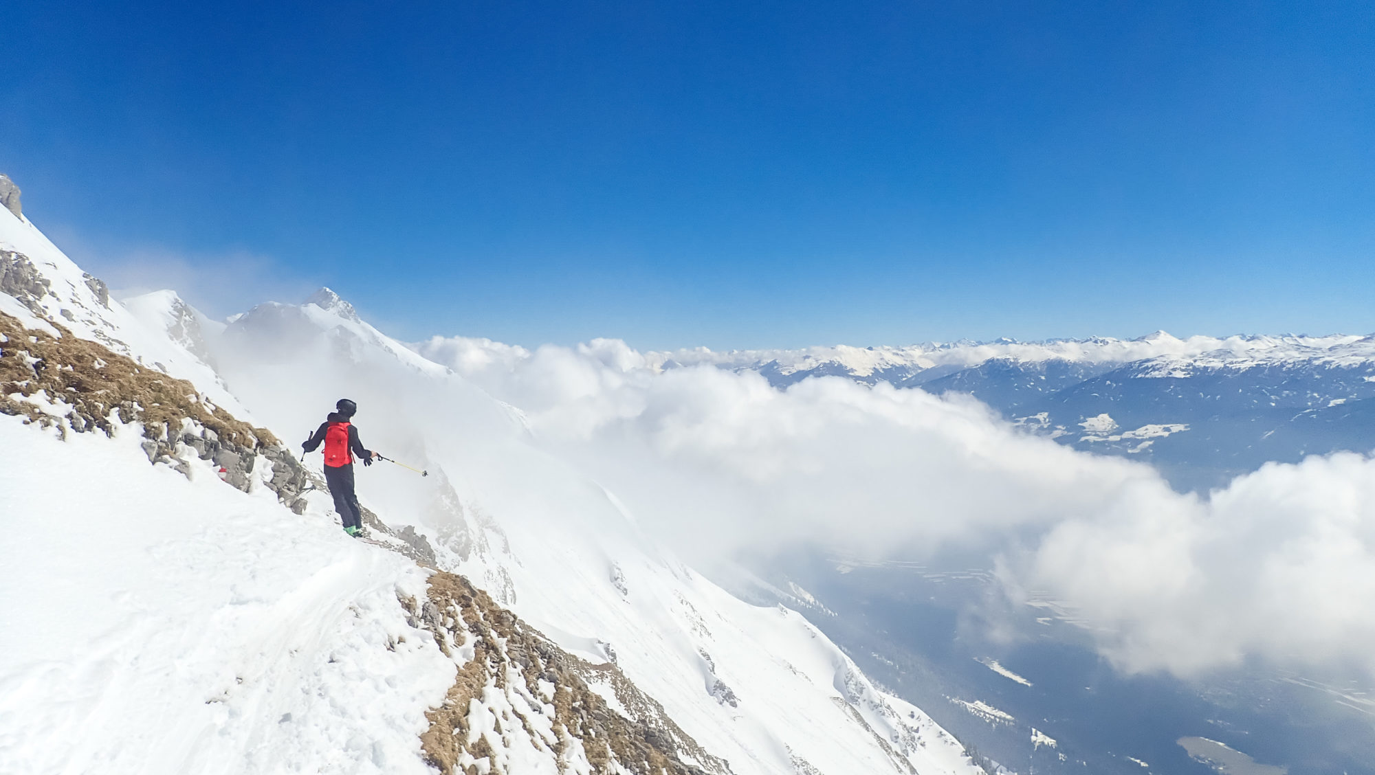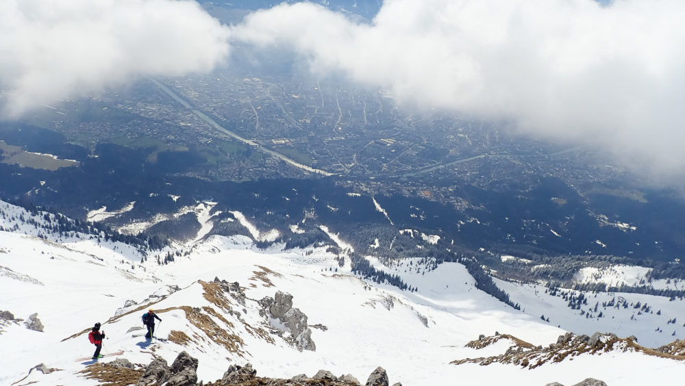 Det är varmt och vi ser till att beta av de brantaste och mest exponerade åken på förmiddagen. Förvånansvärt bra och branta åk. Återigen gör det inte saken sämre när man har Innsbruck under sig samtidigt som man lägger en schysst sväng på en av alla orörda spine som går att hitta i Nordkette.