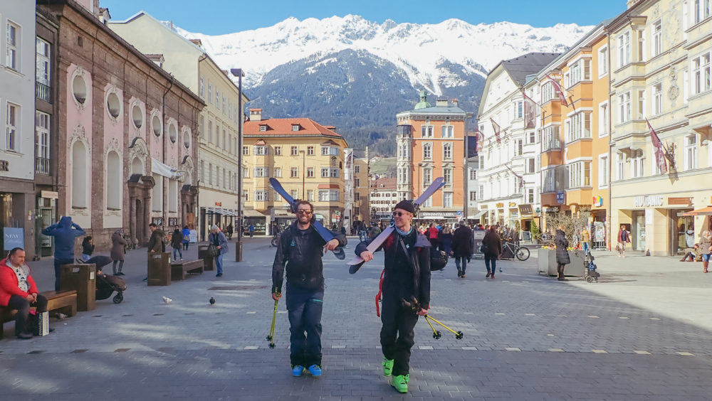 Min tänkta resepartner och fotograf ringer och lämnar återbud några dagar innan avfärd. Hur löser jag detta? En hel artikel med endast selfiestick-bilder? Jag slänger iväg ett meddelande till min goda vän Ronan. Vi träffades på vår första säsong i St. Anton och han har nu, återigen tagit sig hela vägen från Tasmanien för att göra ytterligare en säsong i alperna. Det krävdes inte direkt någon övertalning för att få med honom på tåget och haka på som fotograf och lite skidåkning i Innsbruck.