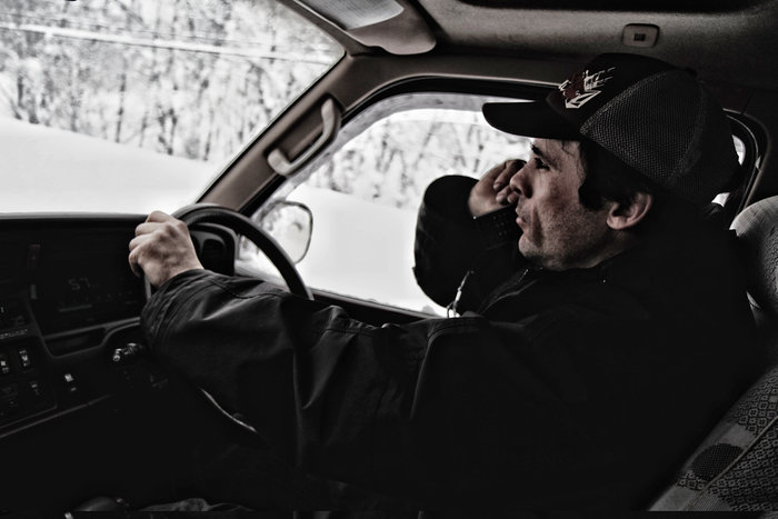 Nästa morgon när jag möter Clayton har han redan hunnit köra två bilar till verkstaden, skottat snö, budat på ännu en snöslunga han hittat på Ebay, skottat lite mer snö med hjälp av den ryska snöslungan. Han är precis i färd med att värma upp bilen då han själv ska köra oss till dagens fotoplats.