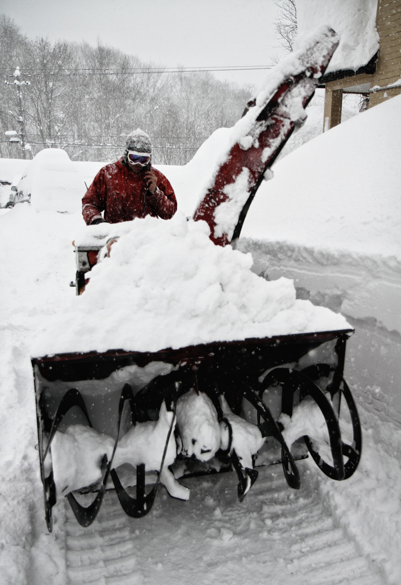 För de allra flesta är mindre snö inte något positivt men för Clayton och de andra på Black Diamond Lodge betyder mindre snö mer fritid. Vi förstår att snö är en stor del av Claytons vardag när vi tittar in på hans bakgård och ser alla leksaker han har. Snöslungor, oräkneliga spadar, en Bobcat, en pistmaskin och en megaslunga som är gjord i gjutjärn (som jag är övertygad om måste vara rysk).