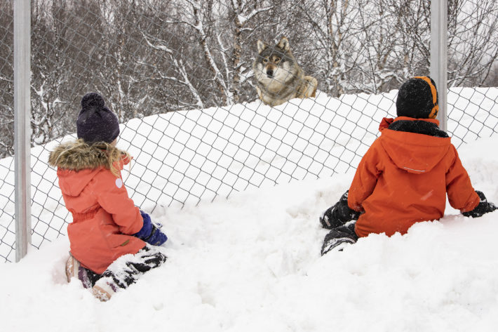 Ett snabbt samtal till receptionen i Björkliden resulterar i en bokad stuga för de kommande fem dagarna. Kidsen har längtat efter björnarna, lodjuren och vargarna i Polar park, som ligger cirka en timme med bil norr om Narvik. Vi hinner nätt och jämt dit för att hälsa på djuren. Vi rullar från Polar parks parkering vid 15:55.