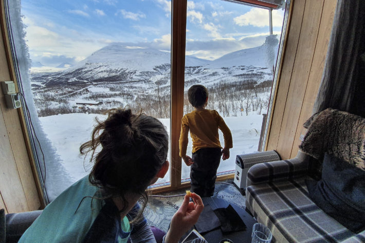 Vi har precis kommit fram till ett snörikt och kallt Narvik efter en hel dags resande från Göteborg. Nu sitter jag, min fru Linn och våra två barn Meja och Leo på en bensinstation smaskandes på fyra löjligt dyra korvar. Utanför det stora fönstret står vår med skidprylar fullpackade hyrbil parkerad.