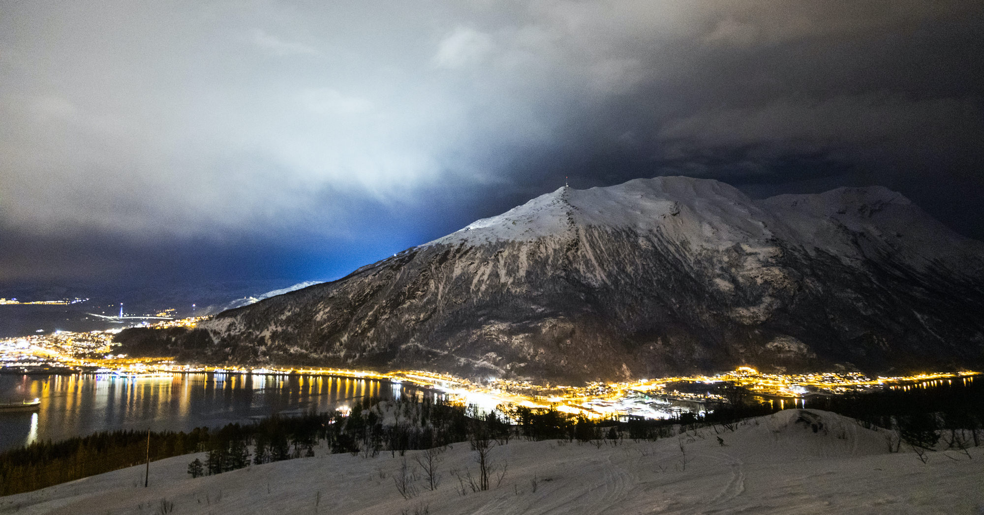 Dagen efter, onsdagen den 11 mars, hinner vi med tre timmar med kvällsåkning i det lilla men charmiga Ankernes Alpinanlegg innan närvaron i Norge skakas om. Det var ett gäng härliga timmar som gav ett gott smakprov av säsongens rika snötillgång i Narvik. Skidsystemet, som består av 2 liftar och 8 nerfarter, drivs och ägs av den lokala skidföreningen. Fallhöjden är nästan 300 meter och en varm choklad med våffla kostar 40 kronor i värmestugan ”Villa utsikten”, som ligger intill pisten. Förutom den tilltalande prisbilden på dryck och tilltugg så håller utsikten i skidsystemet total världsklass. Framför skidspetsarna breder både fjorden och Narvik ut sig samtidigt som det storslagna Fagernesfjellet tornar upp sig mot himlen. Vyn består av berg och fjord. Så långt ögat kan nå.