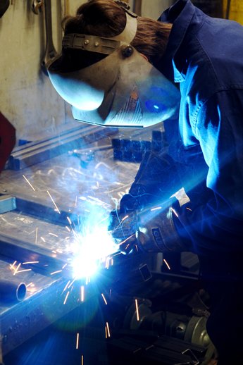 Vid högsäsong händer det att David själv drar på sig svetsaroverallen.