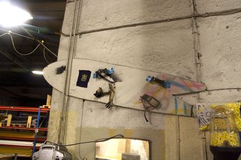 ![]() Davids första bräda har en given plats i Scandinavian Rails lokaler. |