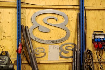 Vi fortsätter ”rundturen” och blir ståendes vid en stor hög svartmålade lätt böjda rails, stommarna till vad som skulle kunna bli ett tolv meter långt S-rail.