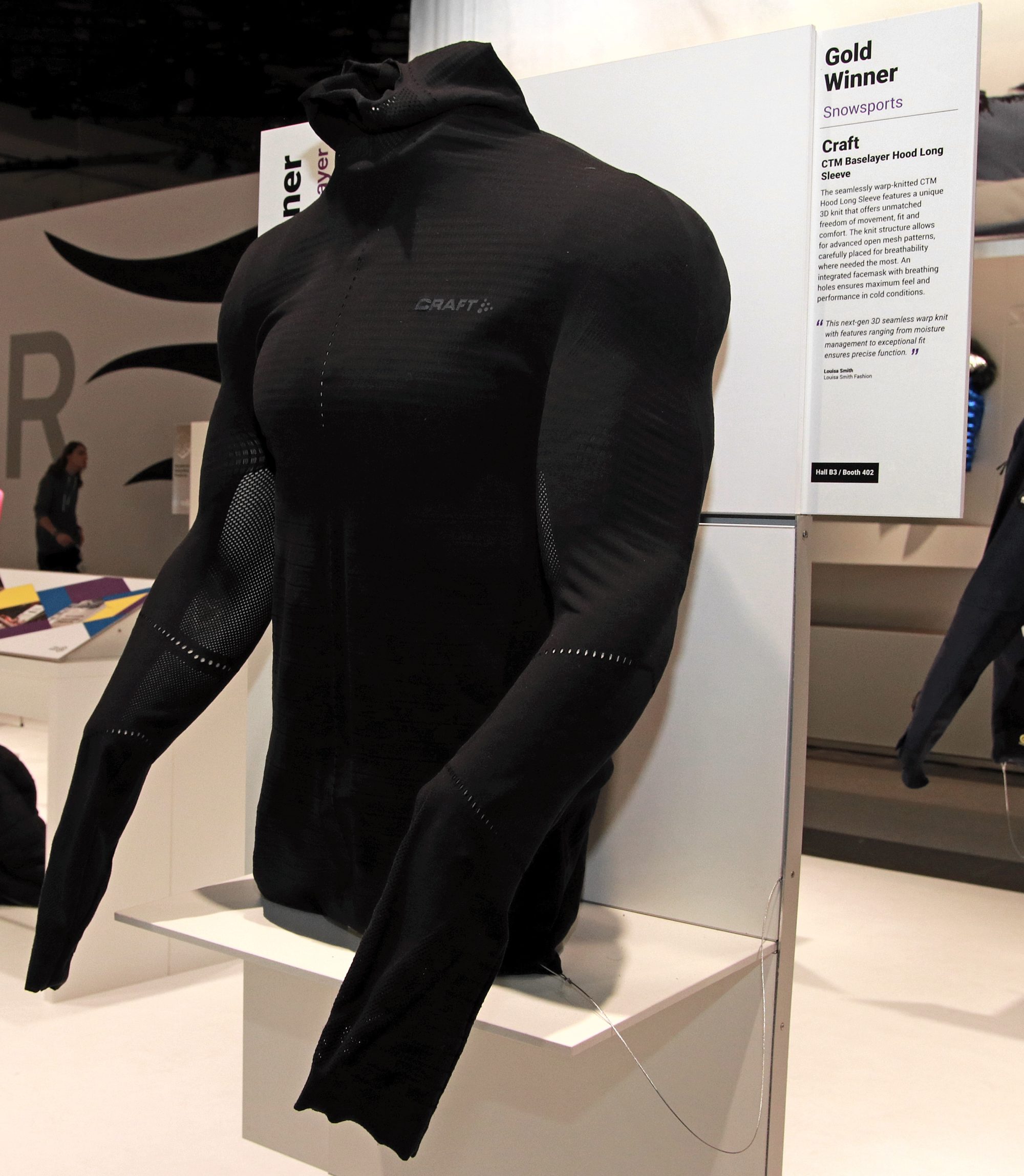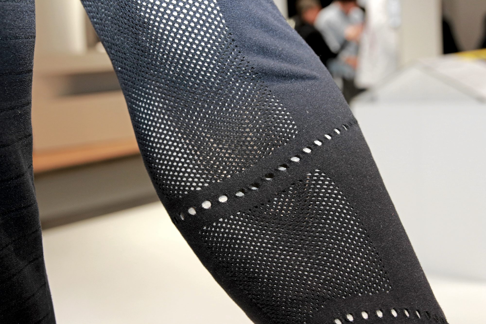 ”Denna nästa generations 3D sömlös stickningen med metoden ”varpa” som innebär att tyget klarar att hantera fukt, exceptionell passform och precis funktion.”