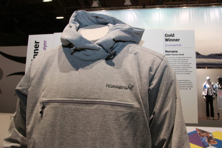 Även Norrønas kombination av modernt och old scholl fick ISPO-juryn på fall. Røldal Thermo Hood tyckte de var extremt mångsidig med en mix av modern teknisk isolering och en klassisk hoodie. Varm, mjuk, synnerligen stretchig och gjord av återvunnen och vädertåligt yttertyg som inte innehåller PFC. Fyllningen är varm, återvunnen PrimaLoft Gold Active. Hoodie än är vattentät men har inga tejpade sömmar. Motivering: