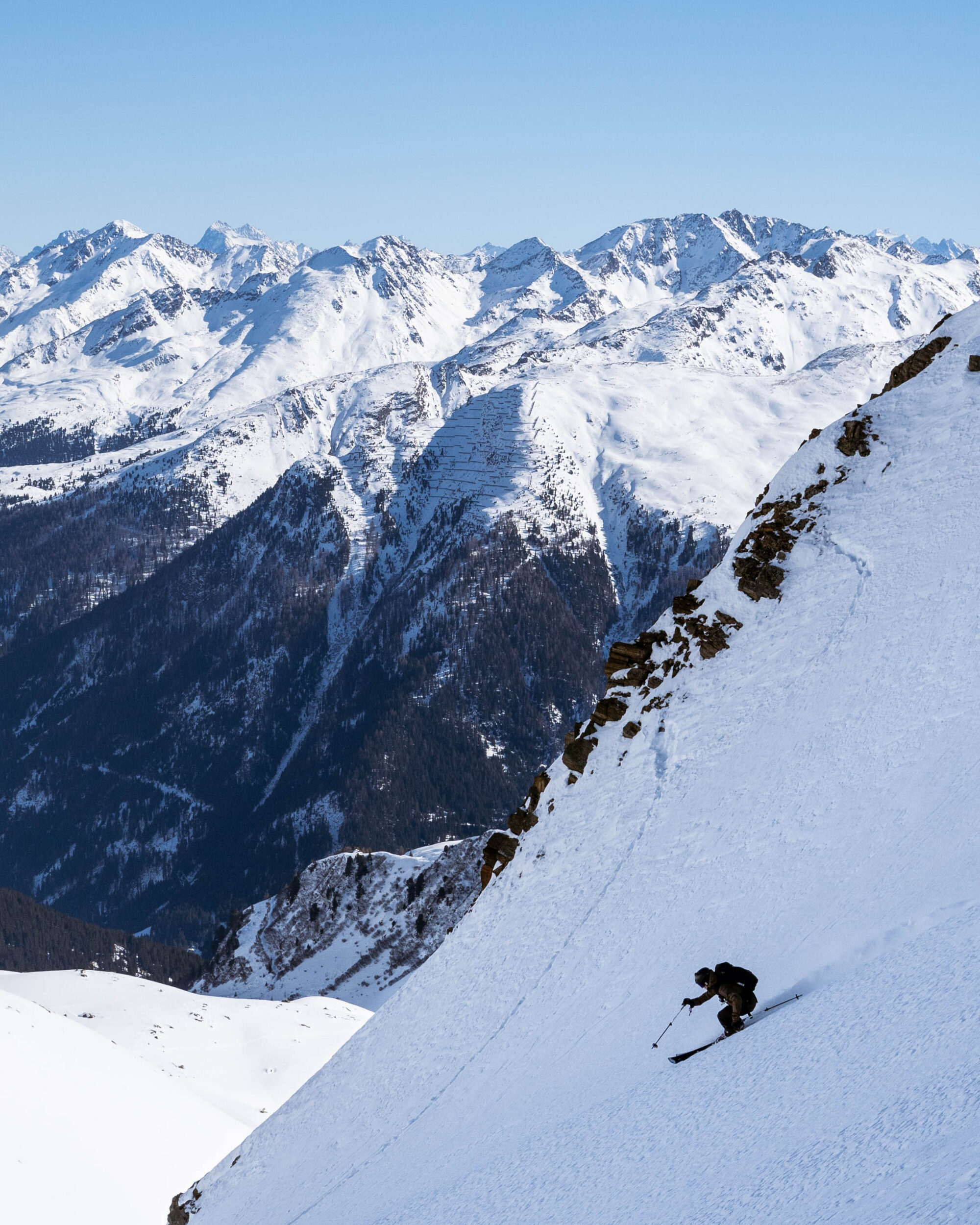 Men det är bara förrätten, anledningen till varför vi tycker Rendl är bäst i hela ski Arlberg är möjligheten att sticka över kam-kanten, droppa ner på baksidan och då få tillgång till tre magiska dalgångar. Hinter Rendl, Malfontal och Smittal. Detta blir vår huvudrätt, dessert och apertif.