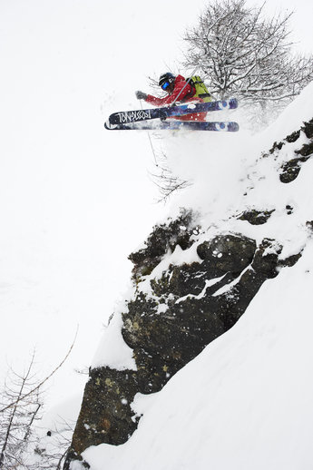För den som vill hoppa klippor finns det en del olika alternativ att välja på. Grytan till vänster om pisten i Val di Lei är ett hett tips från vår lokala “crash test dummy” Stefano Sciuto som glatt kastar sig ut från klipporna framför kameran. Terrängen runt la Colmanetta-liften erbjuder även den några mindre klippor med fina take offs.