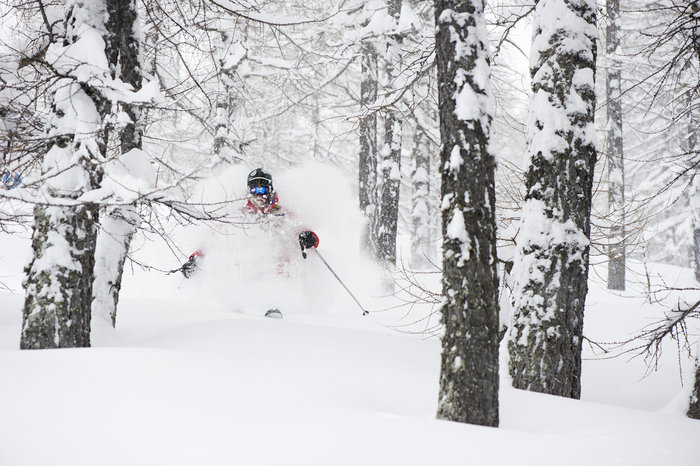 Sicilianaren Stefano Sciuto njuter av 70 centimeter fresh i Larici-skogen.