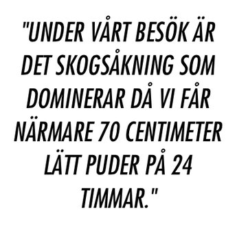 Skidåkningen då? Ofta är det antingen eller när man besöker en skidort. Är det bra skogsåkning eller utmanande högalpin terräng? Finns det ena så finns ofta inte det andra vilket kan vara riktigt frustrerande, särskilt vid dålig sikt. Som nämndes tidigare i artikeln bjuder faktiskt Madesimos skidsystem både på gles lärkskog och finvädersåkning långt ovanför trädgränsen. Under vårt besök är det skogsåkning som dominerar då vi får närmare 70 centimeter lätt puder på 24 timmar.