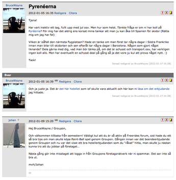 Det var i början av vintern 2012 som Freerides forum fick en oprofessionell påhälsning av Groupons marknadsavdelning. En användare påstod sig att ha ”råkat hitta” ett bra erbjudande gällande en skidresa i Pyrenéerna med en länk till ett Groupon-erbjudande.