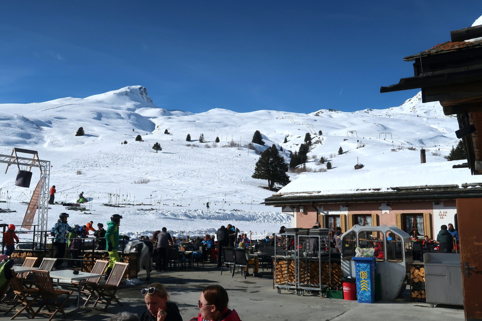 Men nu måste vi berätta om vårt lilla lunchställe. Intill liften Tua längst ner ligger den lilla Restaurant Tua, som har en liten mysig solvänd terrass och ett trevligt värdpar. Och den salamipizza som vi åt här, det var den godaste pizza vi någonsin har ätit. Den kostade över 200 kr och var värd varenda Schweizerfranc. Får inte missas om ni kommer hit!