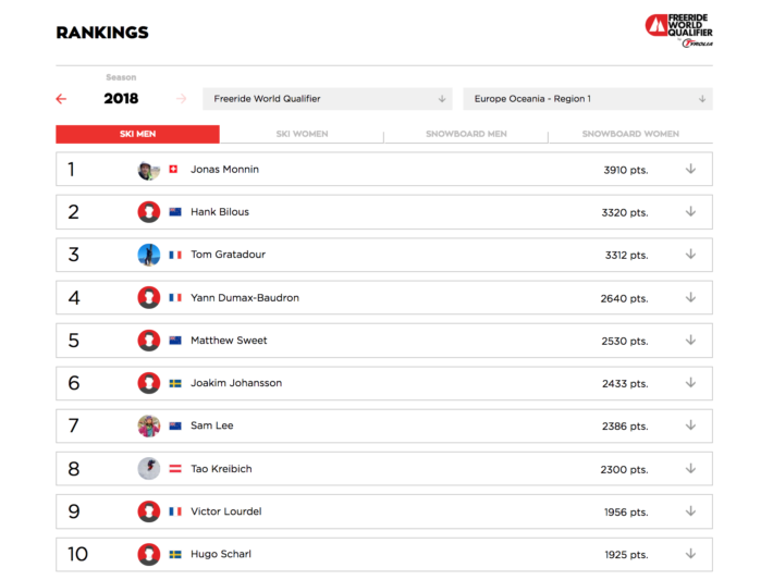 Och till hyrorna fick Joakim Johansson en slant, en andraplats i en fyrstjärnig kvaltourstävling innebär nämligen normalt en prischeck på 1000 Euro. I samtliga fyrstjärniga FWQ tävlingar måste arrangörerna minst ge ut 10 000 Euro till alla kategorier att dela. Det finns också en tabell för hur dessa pengar normalt skall fördelas. Mest ger en vinst i skidor herrar 1500 Euro, medan en brädvinst för dam ofta ger 1000 Euro.