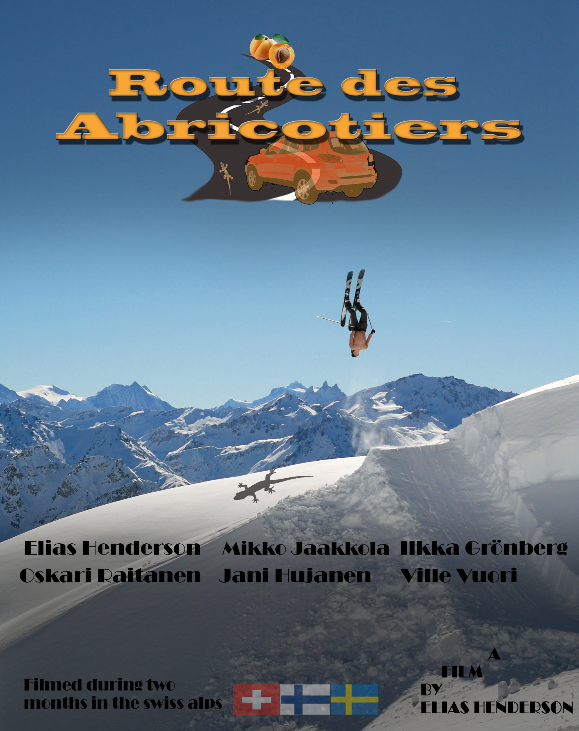 – Planen med filmen var att göra en film utan så mycket snack liknande (powder is like floating on clouds) utan mer skidåkning. Man kan säga att det är en film som många kan känna igen sig i, det är helt utan budget. Jag köpte en begagnad kamera förra hösten med några objektiv. Sedan lånade Jani som var med, en drone från jobbet och så drog vi till Schweiz och satte igång. Ingen hade egentligen så mycket erfarenhet att filma innan. Så man kan säga att de blev ett och annat missat åk, men vi fick ihop det till slut och hoppas vi kan inspirera till skidglädje och pepp. Namnet kommer från vägen vi körde på nästan varje dag för att ta oss till skidåkningen, även att vi bodde på en aprikosfarm.
