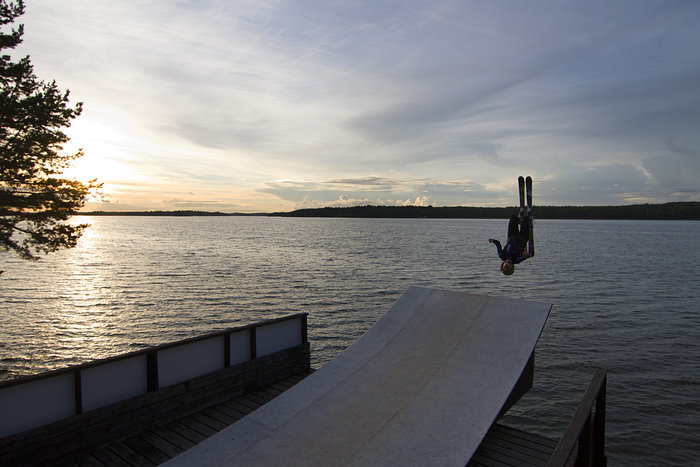 Att ha en storebror som är duktig på att påpeka när man gör fel har funkat bra för att tagga henne på att lära sig nya saker. Syskonen har triggat varandra till nya tricks och volter på mattan hela somrarna, men sedan ska tricken föras över till snö, och där kom storebror med kommentaren “du är bra på studsmatta men du suger på snö, du har ingen pop”. Sagt och gjort, Emma drog till Stockholm för att öva bort studsmattetendenserna på Bosöns vattenhopp.
