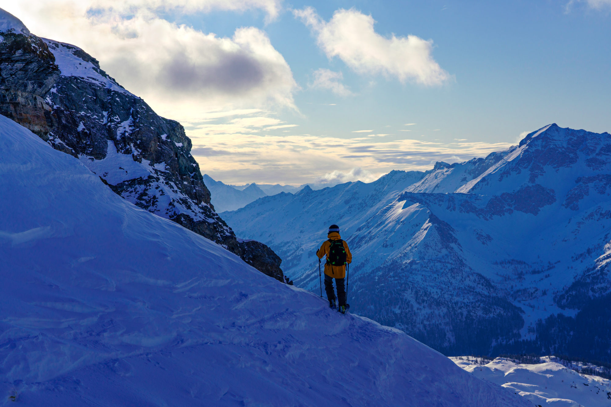 Orestes Hütte är ett måste för friåkare när man besöker Monte Rosa massivet. Beläget precis bortom bergskammen mellan Gressoney och Alagna, så erbjuder de inte enbart fantastisk vegansk och vegetarisk mat, det är också fantastiskt roligt att ta sig hit. Från utsidan ser Orestes Hütte ut som vilket trähus som helst i alperna. Stora, väderslitna plankor och ett trädäck för att njuta av en kall öl i solen. Men det är på insidan som magin sker. Förutom rum för övernattning erbjuder de även rum för Yoga – perfekt för stela leder.