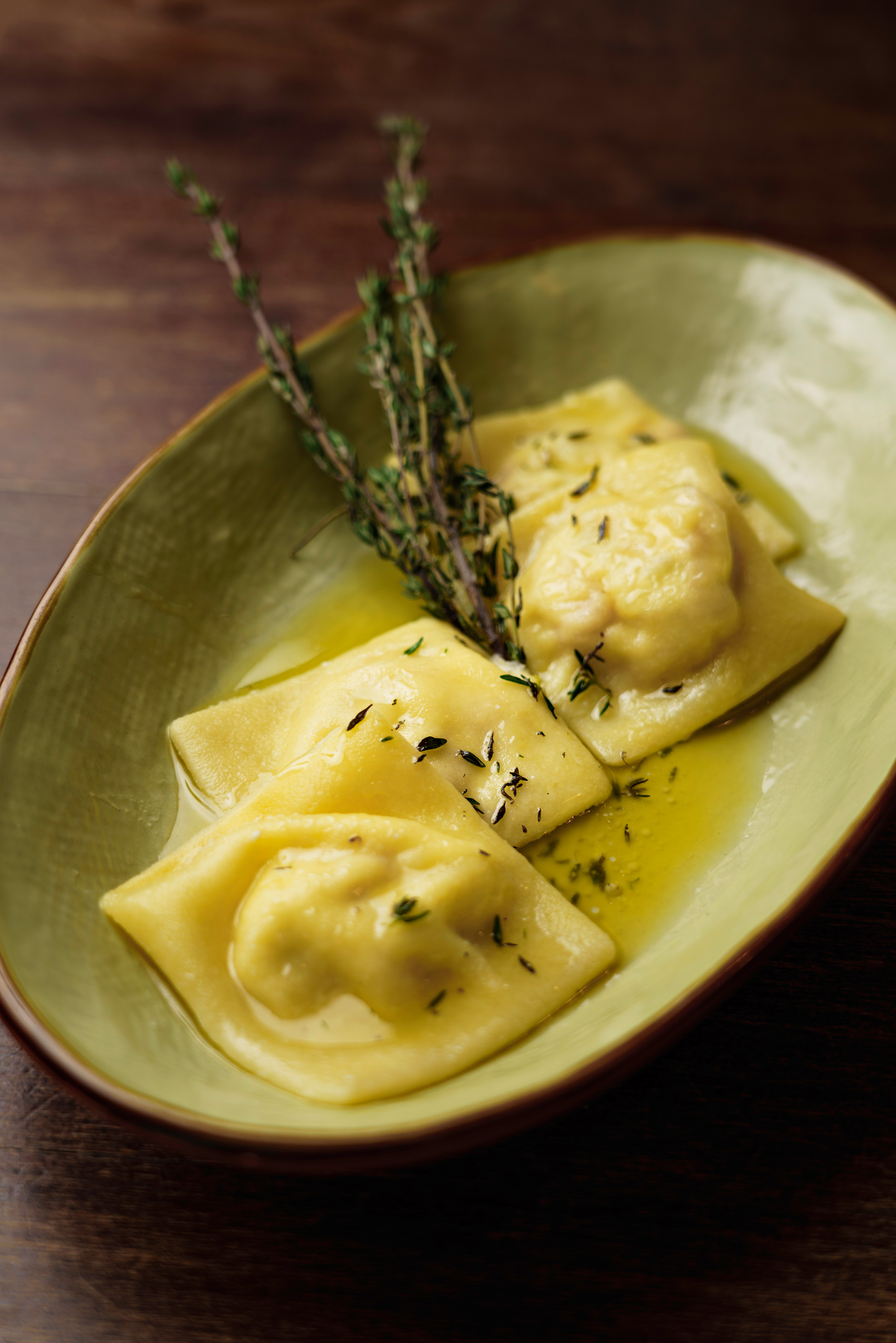 Här blir vi serverade en avsmakningsmeny för att få den fulla upplevelsen huset har att erbjuda. Färggranna sallader serverade på ännu mer färgglada tallrikar, kalvgryta med en kinesisk touch; tillagad med ingefära, kanel och anis och serveras med italienskt (Piedmont) svart ris. Och det absolut absolut bästa som Kina och Italien kokat ihop, det resulterande kärleksbarnet från denna fantastiska kärlekshistoria – den hemlagade raviolin fylld med rökt öring tillsammans med färskost och lime. Detta är ett av de bästa jag ätit i hela mitt 36-åriga liv.