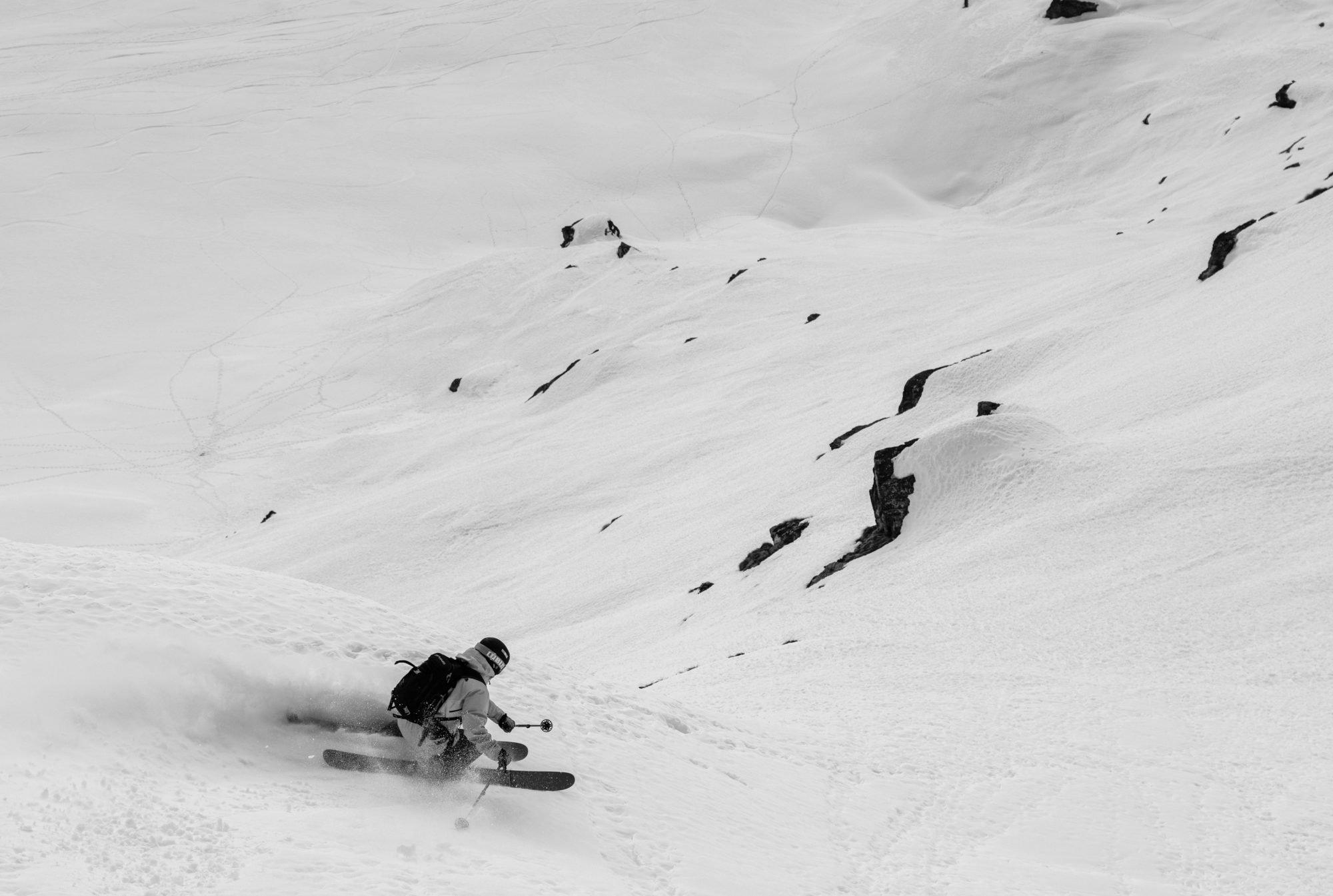 Formen på Monte Rosa och de omkringliggande topparna är helt fantastiska. Att åka skidor genom de tre dalarna, från Champoluc, genom Gressoney till Alagna, är en rolig sträcka som tar dig cirka två och en halv timme av skidåkning att göra. Vart du än vrider huvudet så ser du en ny linje, en ny naturlig kick eller något annat roligt att åka på. Storleken på denna lekplats för skidåkare är mer än vad man kan avverka på en vecka, med råge! Tyvärr, eftersom snöförhållandena i hela Europa var hemska, så var skidåkningen i Monte Rosa området inget att skriva hem om. Allt, bokstavligen allt, var en solid massa av is på grund av varmt väder och ingen snö sedan december, enligt lokalborna. Ungefär samma status som min frys hade hemma i Åre när jag var 20 år.