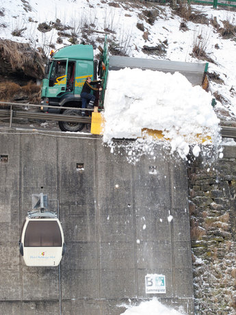 – Vi tillverkar snö på skidorten ungefär en månad innan tävlingen. Sen fraktas snön med lastbilar och dumpas från gator högre upp ner på platåerna, säger Killer.
