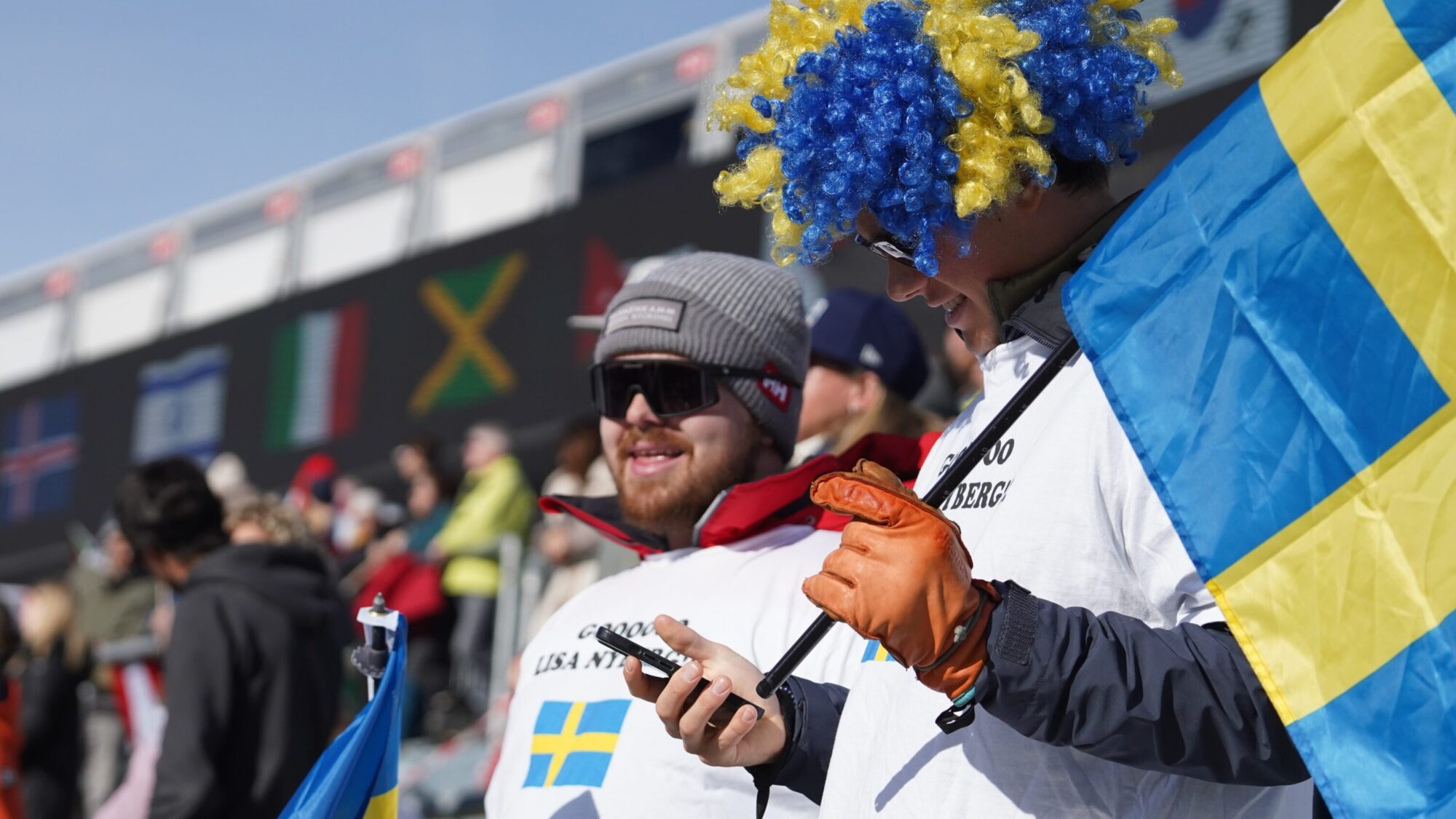 Mitt i vimlet springer vi på svenskar och det råder det ingen tvivel om. Världen är liten för även dem har rest från Värmland. Full mundering från topp till tå som riktiga supporters skall se ut och det går inte att ta miste på vem de hejar på.