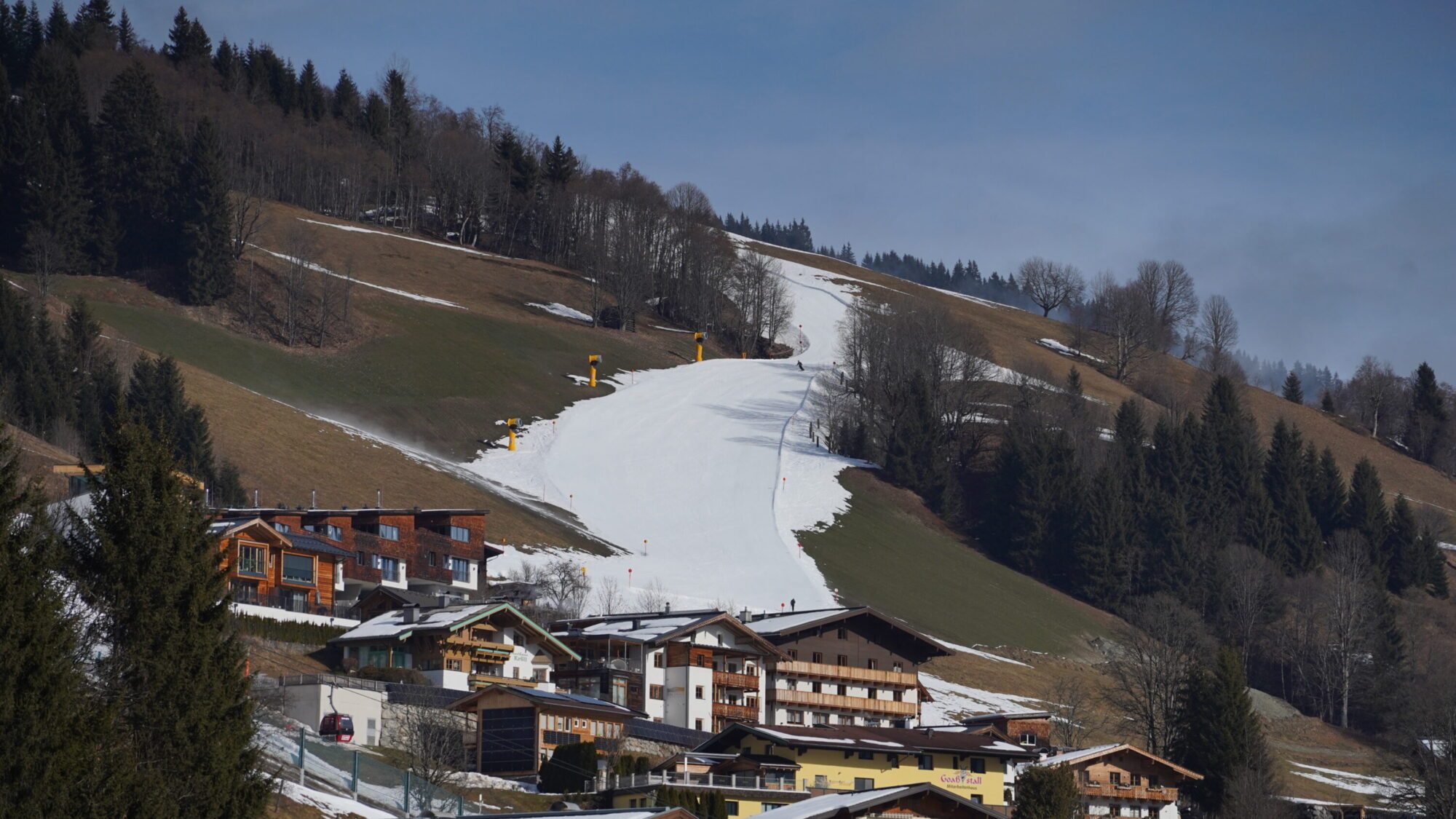 Första kvällen avnjuter vi en god välkomstmiddag på Unterschwarzachhof inne i Saalbach, efter en dag med resande går vi till sängs med tunga ögonlock. På morgonen hyr vi utrustning nere i sport shopen precis intill gondolen och eftersom snön på sidan av backen inte existerar landar valet på ett par Atomic Redster S9 som var hyrans absoluta värstingar. Dessa har jag testat förut och vet vad jag har att vänta mig.