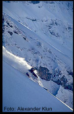 I liften från dalen upp mot Titlis är det klassiska off pist-åket Laub det första man ser. Laub betyder lavin på schweizertyska och det är enkelt att lista ut varför den heter så. Från topp till botten är det 1200 fallhöjdsmeter och under hela åket har du en fantastisk vy över Engelberg med klostret som en kraftigt markerad fyrkant längs in i dalen. Laub är lättillgänglig, du behöver inte knata något för att komma dit. Däremot bör du ha någon som känner området med dig. Per Gustafsson och Johan Andersson, som båda tillbringat stora delar av tidigare vintrar och även denna i Engelberg, hittar på berget som ingen annan svensk. De var våra guider när vi var där och trots snöbristen lyckades de hitta fin snö som bjöd på oförglömliga åk.