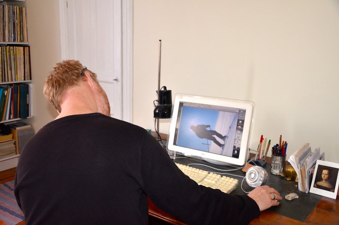År 2011 blev det lite klent med jobb på Dramaten och Erik kände att det inte fanns något direkt som höll honom i Sverige. ”Vad fasen, jag är 52 år gammal och har aldrig gjort någon säsong, nu är det dags”, tänkte han. Sagt och gjort. I november tog han sina pinaler, drog ner till Chamonix, hittade en lägenhet i Sud som han delade med två tjugoåringar och fixade lite städjobb. Och mamman ringde och var orolig för laviner. Precis som det ska vara när man bummar första gången. Säsongen började fint och det tokdumpade i december. Och pudersvängarna började sitta för första gången. Dessvärre tog säsongen bokstavligt tvärstopp när han skulle svänga mellan två granar i Flegère och den nedersta grenen var fastfrusen i snön. I februari flög han hem, några erfarenheter, två kryckor och fyra titanskruvar rikare. I år var han tillbaka i Cham en vecka i januari, och trots att benet var lite svagt och känslan inte riktigt fanns där kunde han i alla fall åka.