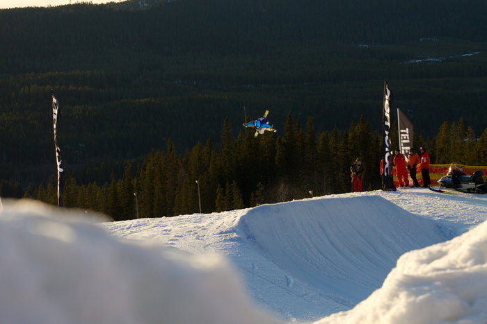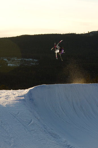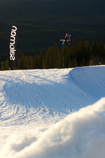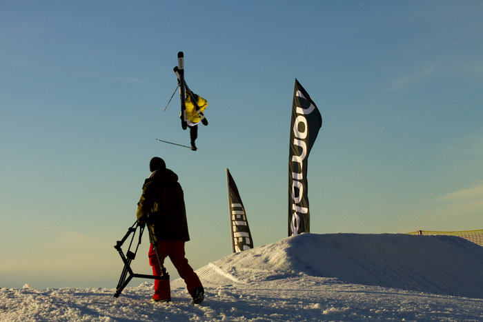 Efter den lyckade railsessionen utanför Naturhistoriska Riksmuseét i Stockholm begav sig europafinalisterna i Salomon Jib Academy på fredagen till Kläppen. På plats blev det att snabbt byta om till skidkläder för att påbörja en fotosession i det fina kvällsljuset.