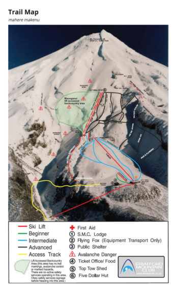 De fyra vulkaner som Evelina, Janina Kuzma och Anna Segal och övriga gänget ska skida är Mt Taranaki, Tongariro, Ngauruho och Ruapehu. Mt Taranki är 2518 meter och ligger i Egmont nationalpark. Vulkanen har det lilla skidsystemet Manganui Ski Area vid sin fot. Ett system med tre repliftar och en ankarlift, som börjar på 1 260 meter över havet och går upp till 1 680 meter. Mt Taranaki ligger lite självt på sydvästra delen av Nya Zeelands nordö. De resterande tre vulkanerna ligger lite mer tillsammans i nationalparken Tongariro.