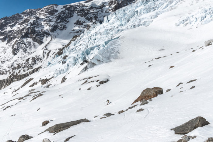 Har du utrustningen som krävs och kunskapen som krävs ska jag inte sticka under stolen med att det är en rejäl kick att baklänges, med skidorna fastspända på ryggsäcken, fira ned sig själv till ett åk som översatt till svenska är döpt ”Den förlorade dalen”. Namnet framstår som allt annat än slumpartat och när du efter ha kopplat loss dig själv från repet och vänder dig om för att låta din blick möta glaciärisen som vräker sig ned från Lyskamm framstår bergen som mer dramatisk än någonsin.