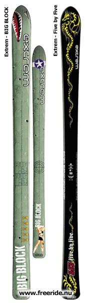 Inför nästa säsong satsar Extrem på skidsidan enbart på twintip och feta friåkningskidor. Två nya, feta tillskott i Extremfamiljen är Five by Five och BIG BLOCK.