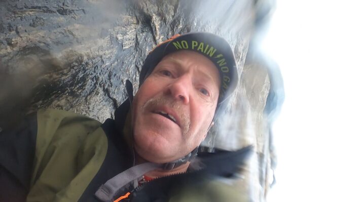 – Jag faller över kanten och slår den vänstra sidan av hjälmen med en duns på den blöta stenen. Skidorna studsar av och jag stannar tvärt i en vägg av snö. Det tar några sekunder innan jag inser att det har gått någorlunda bra. Lite mörbultad kan jag skrika till Ola att jag mår bra ifall han hade sett det hela. Ola hade gått ungefär på samma linje som jag och förstod att något var fel när jag bara försvann.