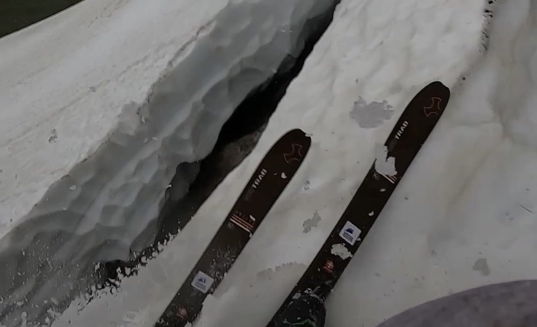 Film: Här åker den norska skidåkaren ned i sprickan