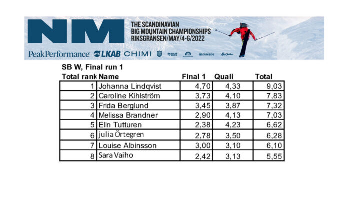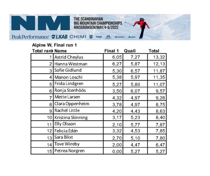 Kristofer Turdell, Hanna Westman, Johanna Lindqvist och Rickard Croy åkte fetast i Ravinen på Nordals idag. Här är allt du behöver veta om första finaldagen på extrem-NM i Riksgränsen 2022.