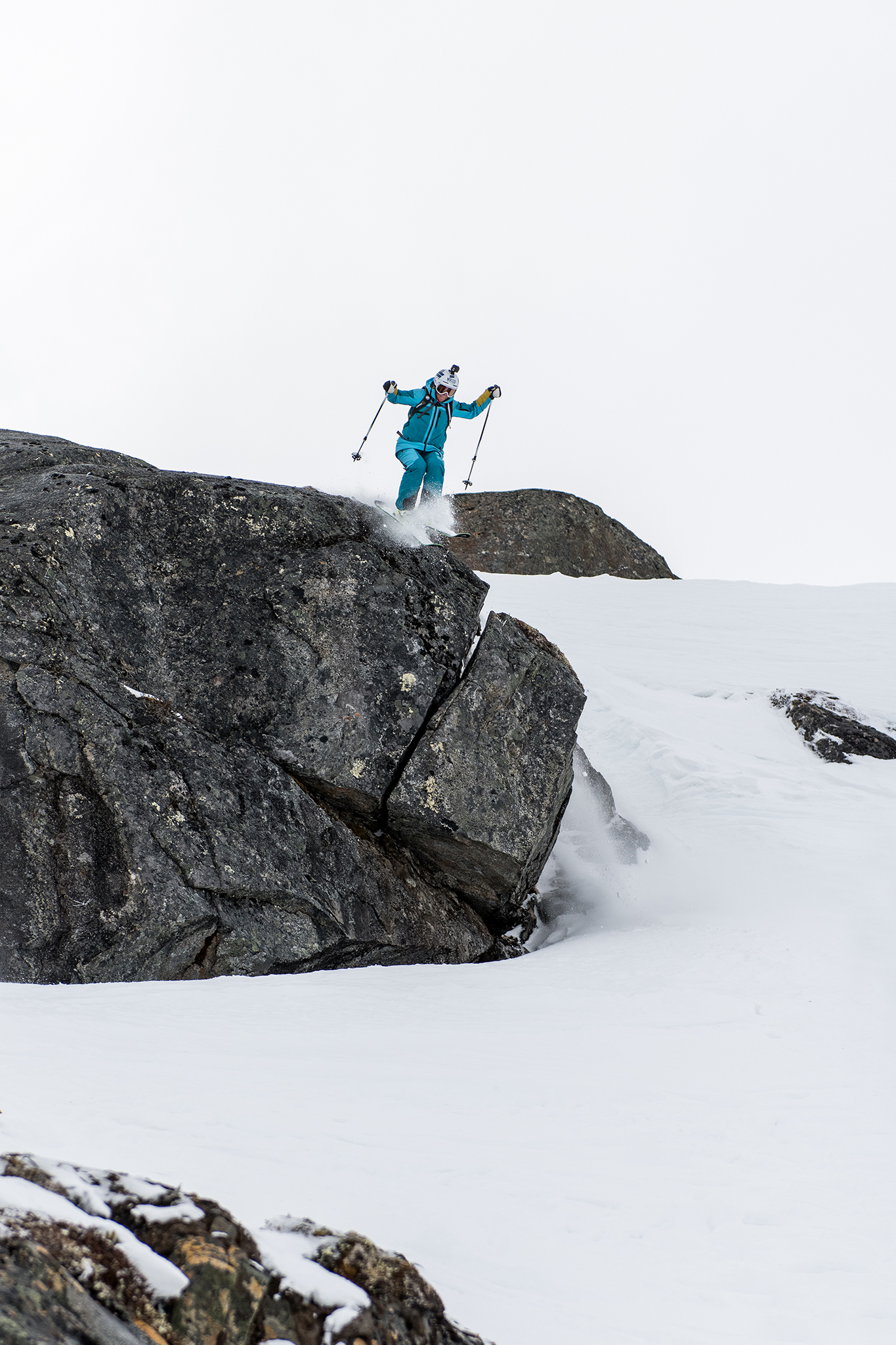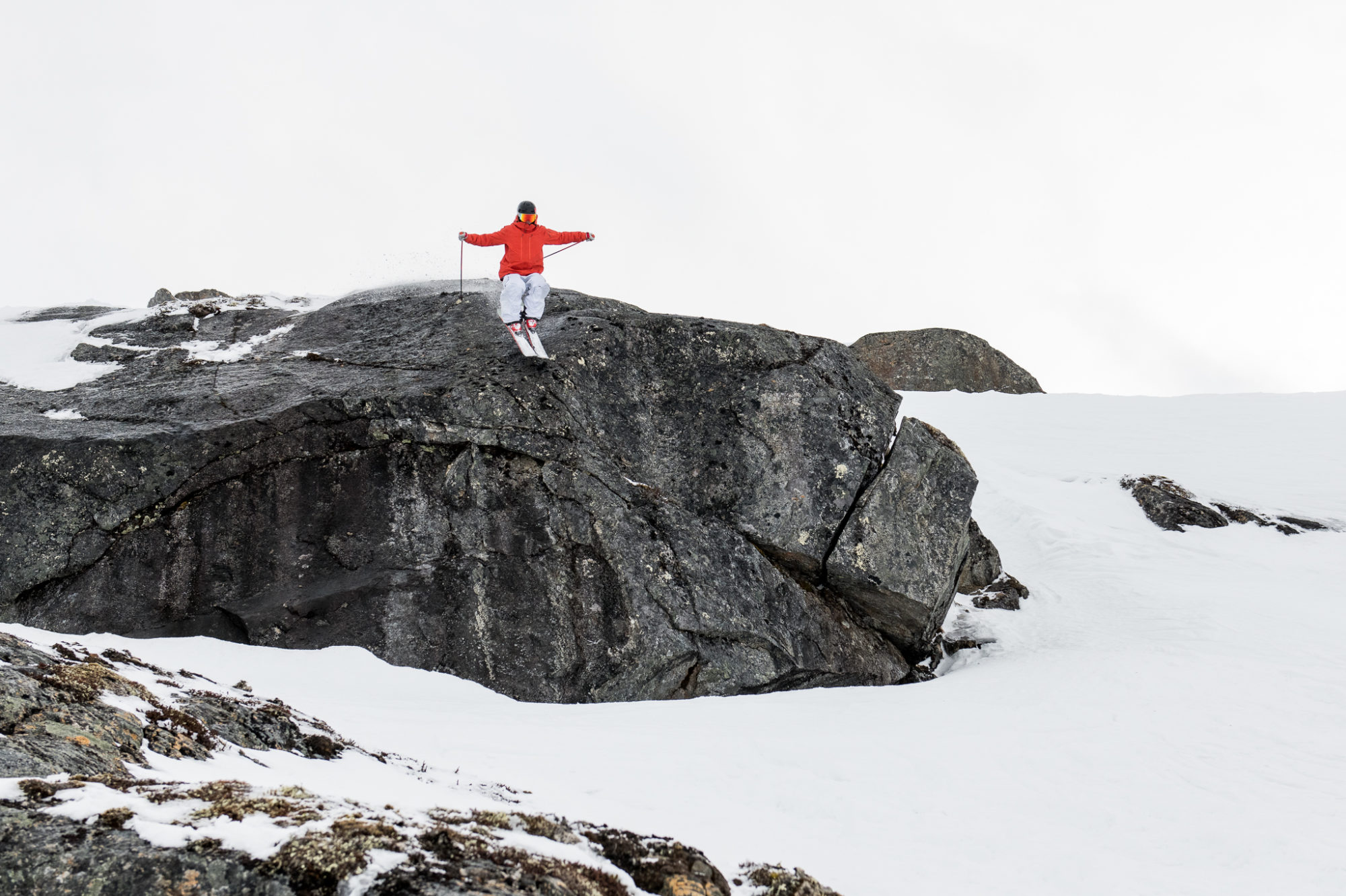 Till en början såg det mörkt ut för finalen i Scandinavian Big Mountain Championships 2019 då det dragit in täta moln över dagens tävlingsområde och sikten var minst sagt minimal. Efter hand klarnade det upp och tävlingen kunde dra igång. Tävlingsfacet Ravinen såg riktigt lurig ut med is och snö om vartannat och droppet i övre delen av facet, även kallat Klumpen, skördade många offer i finalen.