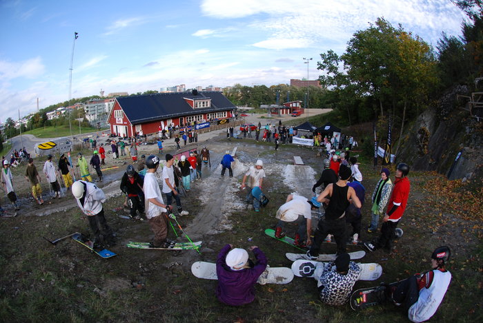 Make it Happens sista stopp blev Hammarbybacken, Stockholms mest centrala skidanläggning. Med en liten försening drog eventet igång så fort setupen stod åkbar. Över 100 åkare hade denna dag samlats för att åka bort sommarvallan.