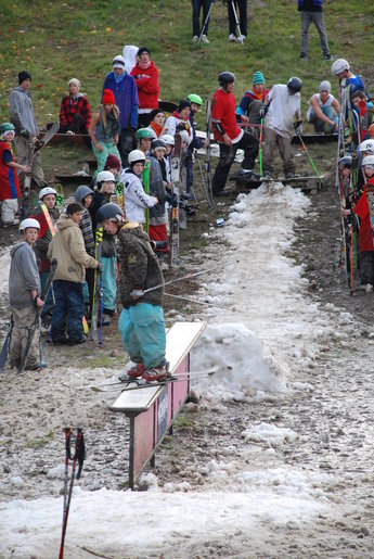 Tyvärr var det klent med snötillgång och detta jam förvandlades efter någon timme till en lerpöl där äkta skidglädje visades. Trots att folk blev lika kladdiga som barnen i Via-reklamen på TV fanns det inga sura miner på plats.