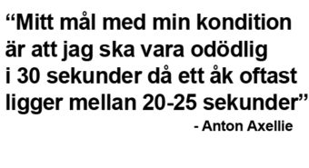– När jag kör kondition så kör jag väldigt mycket intervaller. Mitt mål med min kondition är att jag ska vara odödlig i 30 sekunder då ett åk oftast ligger mellan 20-25 sekunder.