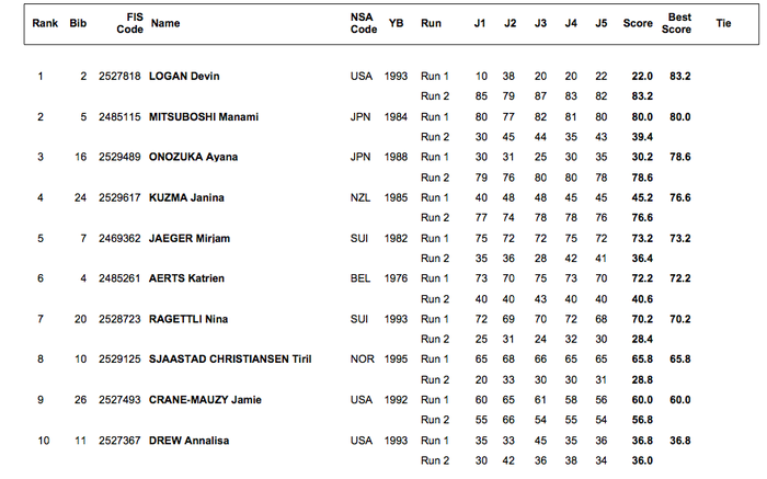 –Jag kände verkligen trycket från de japanska tjejerna inför mitt andra åk i finalen. Jag hade turen på min sida idag och det känns som en skön start på min säsong, avslutar Devin Logan. Japan har successivt blivit starkare i pipe och kan bli riktigt farliga de kommande åren när flera åkare sattsar på bra resultat i OS.