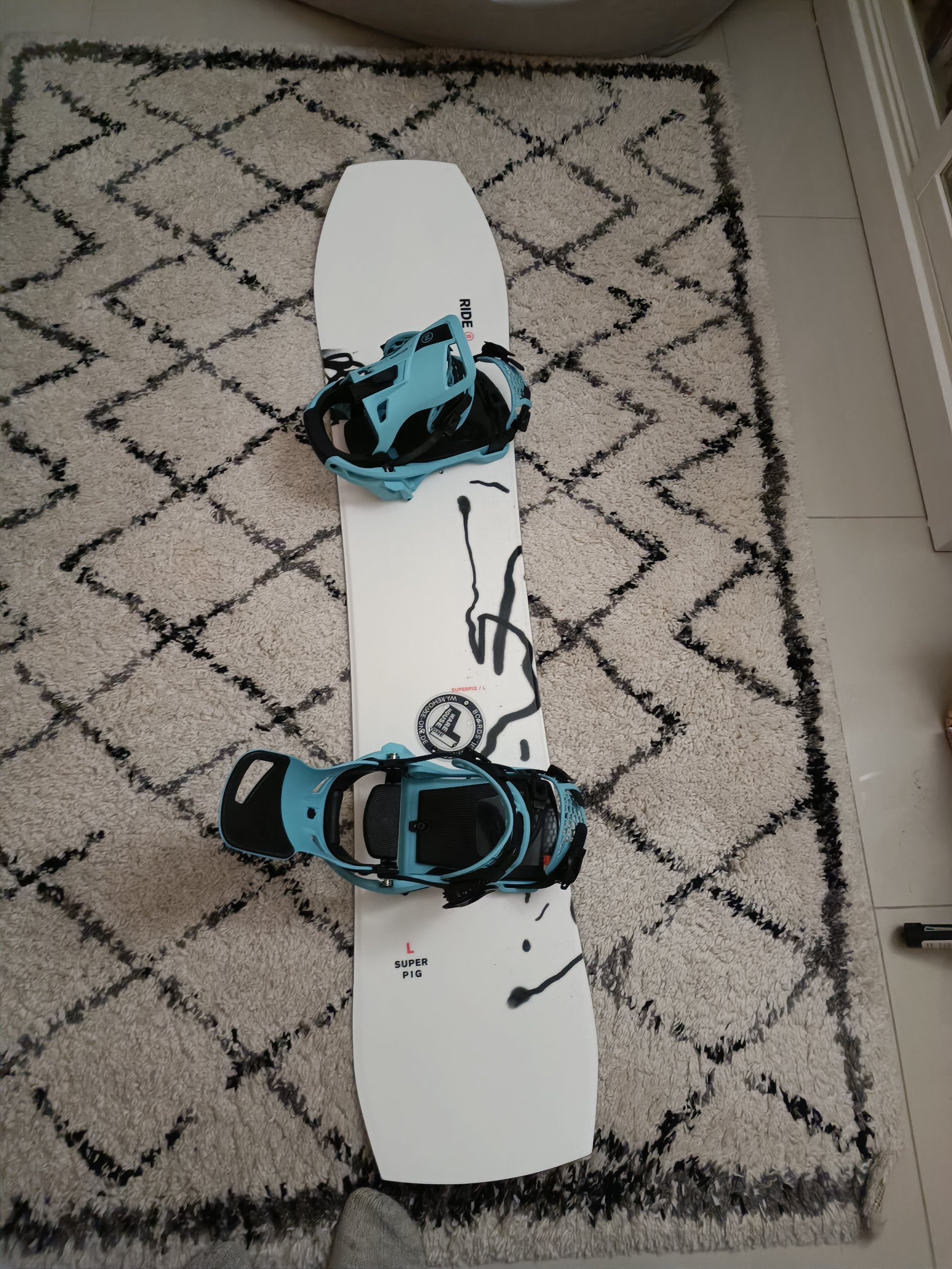 Ride Superpig i längden 154! Och jag är 191, 95 kg gammal fläsk... Ville ha en liten fånig bräda för att carva ner från en afterski krog till en annan krog på jullovet någonstans. Och synnerligen en bräda lätt att bära i handen omkring byn.